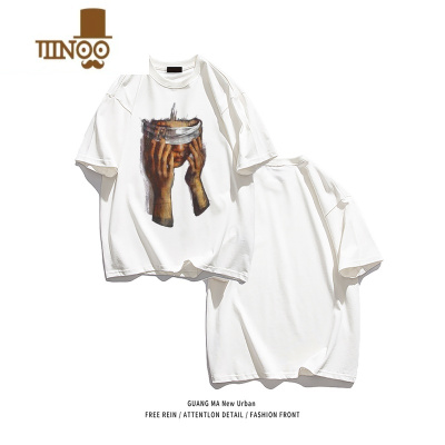 YANXU欧美高街潮牌短袖男夏季美式复古oversize油画T恤情侣设计感上衣