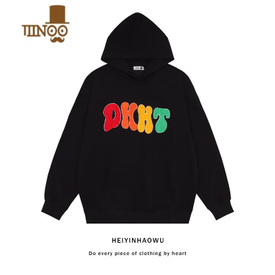 YANXU美式潮牌设计感字母毛巾绣印花连帽卫衣男女宽松oversize欧美上衣