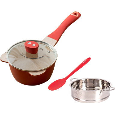 拉歌蒂尼 MINI系列奶锅不粘宝宝辅食小锅平底汤锅麦饭石不粘锅煮泡面热牛奶锅 红 16cm奶锅