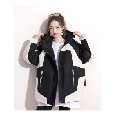 年新款撞色防风冲锋衣女学院风短款工装派克服户外登山外套