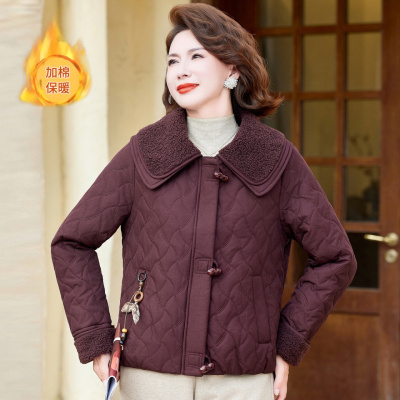妈妈装新款棉衣保暖外套40岁翻领短款中老年女装棉服冬装衣服50岁