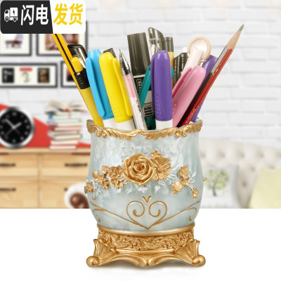 三维工匠欧式树脂化妆刷收纳筒韩国创意礼品时尚摆件化妆笔收纳笔筒 B款笔筒收纳化妆盒