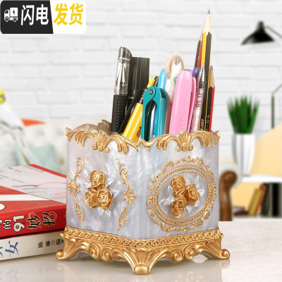 三维工匠时尚笔筒收纳盒可爱创意化妆刷桶北欧ins风个性笔筒树脂摆件 浪漫庄园珍珠黄