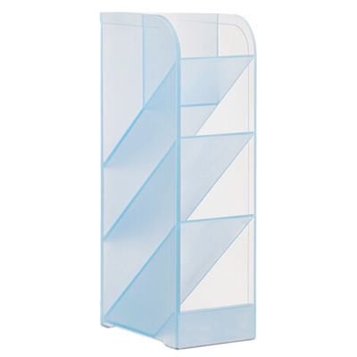 得力8932 斜插式笔筒 创意透明ins桌面收纳笔架多功能四格时尚可爱大容量办公 蓝