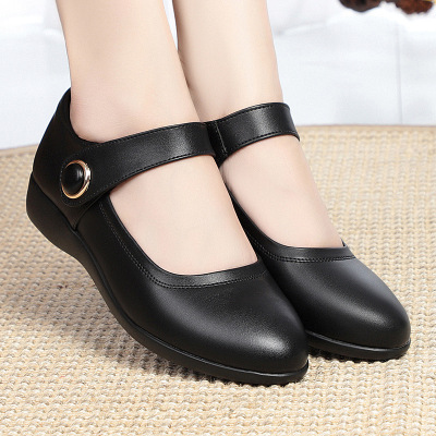 新款软皮软底单鞋女圆头低跟妈妈鞋防滑耐磨舒适百搭工作女鞋