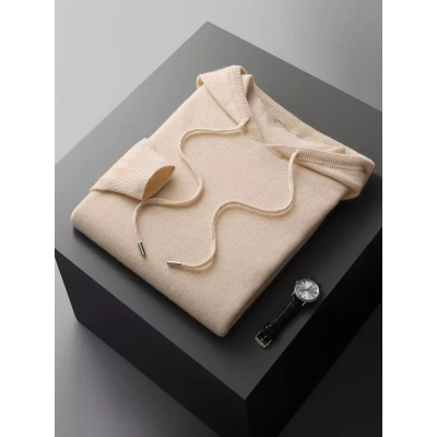 青年时尚无缝春秋新款羊毛衫男士连帽毛衣纯色针织羊毛帽衫卫衣男