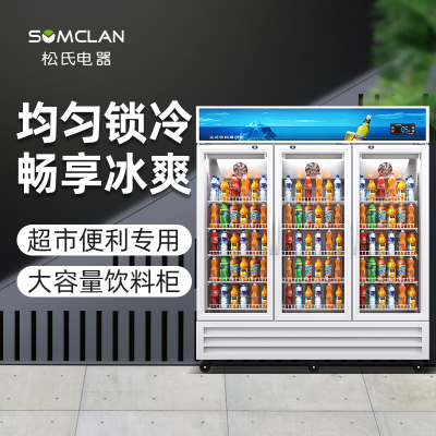 松氏冰箱商用饮料展示柜冷藏冰柜保鲜柜立式超市三开门冷藏柜啤酒柜1200L直冷