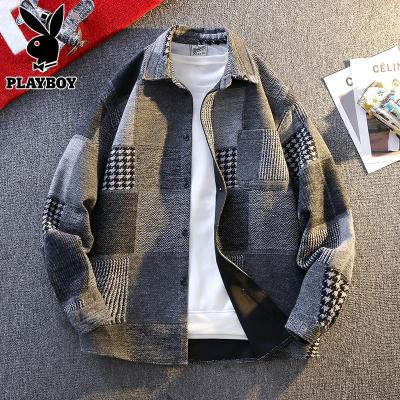 花花公子长袖衬衫男士格子休闲外套春季潮牌帅气新款宽松衬衣男装