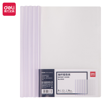 得力(deli)5532加宽加厚15mm拉杆夹 透明抽杆文件夹报告夹 颜色随机 A4 5只/包 2包装 单位:组