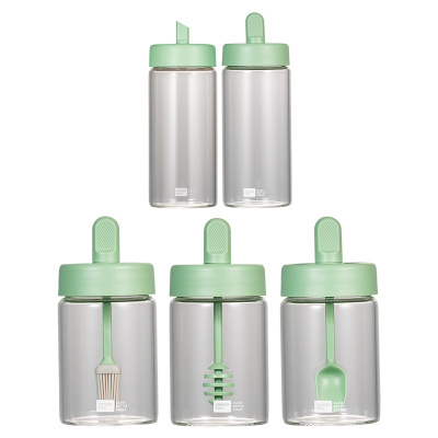 炊大皇圆形玻璃调味罐4件套装厨房用品勺子瓶油刷瓶蜂蜜瓶玻璃油瓶ZQSZH