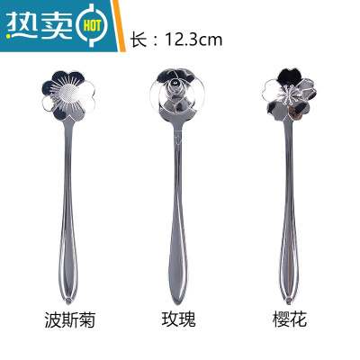 敬平ins北欧式花朵不锈钢水果叉子套装创意可爱轻奢小叉子长柄咖啡勺 玫 咖啡勺3支牙签