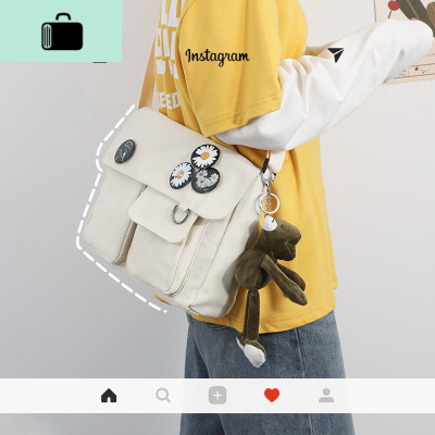 韩国原宿百搭工装男女小雏菊帆布斜挎ins日系港风学生单肩邮差包NEW LAKE女斜挎包