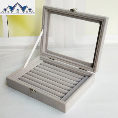 首饰盒戒指耳环耳钉手饰品欧式透明翻盖防尘绒布小容量珠宝收纳盒 三维工匠