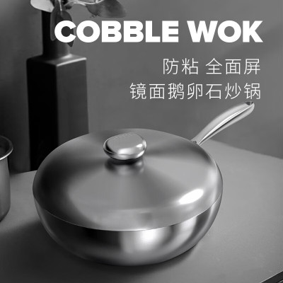 温仑山鹅卵石不粘锅无涂层304不锈钢铁锅蜂窝炒菜锅燃气 不锈钢鹅卵石炒锅 32cm