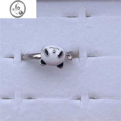 JiMi创意熊猫旋转水钻戒指女生指环流行时尚饰品送友人四川成都纪念品
