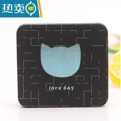 敬平小镜子随身携带化妆镜便携迷你轻薄女桌面可立放包包里折叠镜双面便携式用镜 桔黑 磨纱小猫