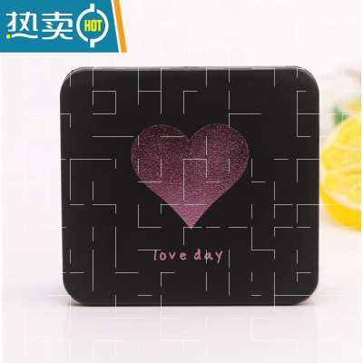 敬平小镜子随身携带化妆镜便携迷你轻薄女桌面可立放包包里折叠镜双面便携式用镜 黑色金 磨纱爱心