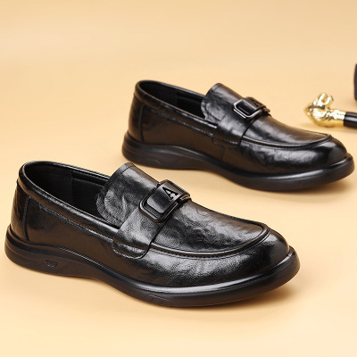 男士休闲皮鞋2024年新款牛皮正装商务皮鞋防滑一脚蹬高端男鞋批发