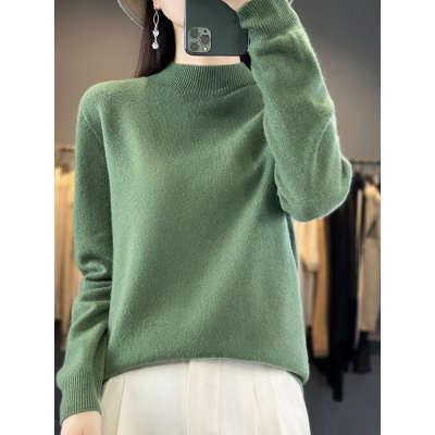 一线成衣纯羊毛衫针织衫女半高领套头宽松打底衫秋冬新款纯色毛衣