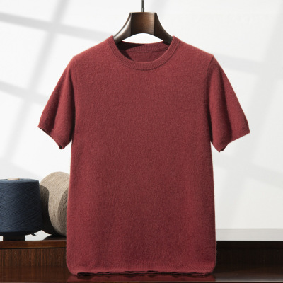男士山羊毛衫圆领短袖针织衫春秋冬季休闲套头内搭羊毛毛衣打底潮