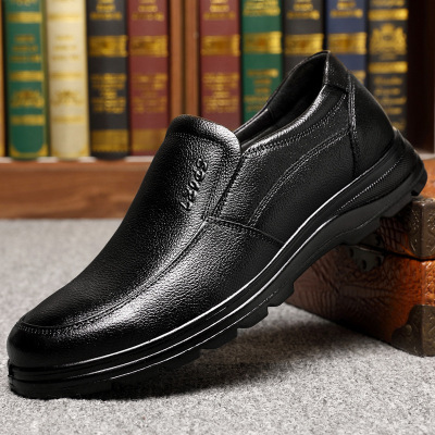 头层牛皮男鞋春秋季商务真皮套脚软底轻便中年爸爸鞋男士休闲皮鞋