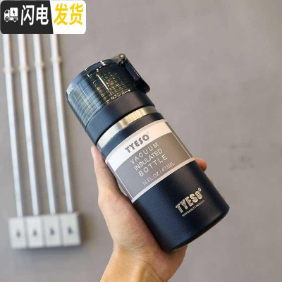 三维工匠韩版大容量不锈钢保温杯便携简约户外运动水壶男女士学生个性水杯 黑色[小号]473