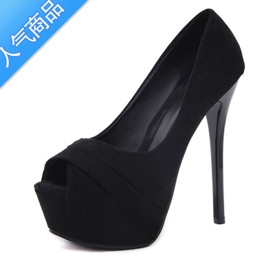 SUNTEK超高跟细跟鞋12cm夜场防水台气质百搭黑色职业少女粉色鱼嘴单鞋夏
