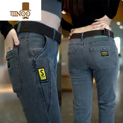 高端竹节牛仔裤男弹力中高腰灰色长裤水洗棉小青年四季款