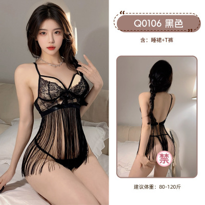 九里晴川情趣睡衣深V性感蕾丝流苏裙魅力性感吊带纯欲睡衣