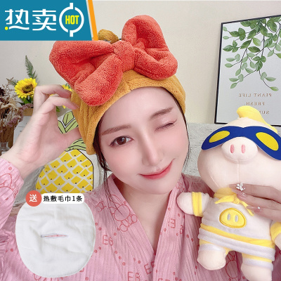 敬平干发帽女吸水速干加厚2021新款网红可爱洗头蝴蝶结包头发毛巾 柠檬黄140g[送热敷毛巾1条]