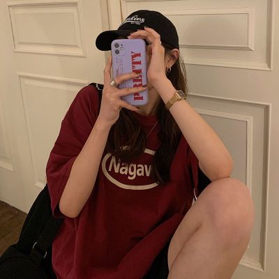 含棉 宽松显瘦中长款字母印花短袖T恤女装夏季新款宽松BF风上衣潮