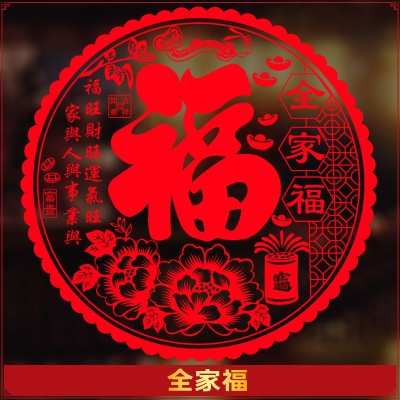 福字窗花剪纸静电贴玻璃贴门贴纸乔迁新年春节装饰 全家福[20张] 27CM直径 贴小窗户