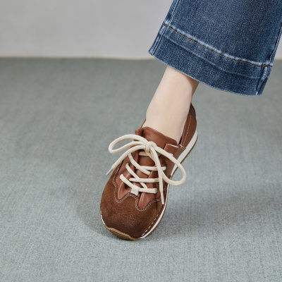 真皮复古手工鞋子女牛皮拼色休闲鞋森系系带德训鞋24春运动休闲鞋