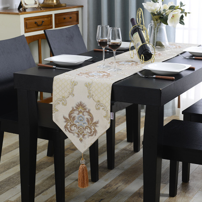 欧式提花桌旗电视柜鞋柜茶几餐桌玄关旗长条桌旗布长条盖布可定做 黎曼菲-咖色花 桌旗32*200cm