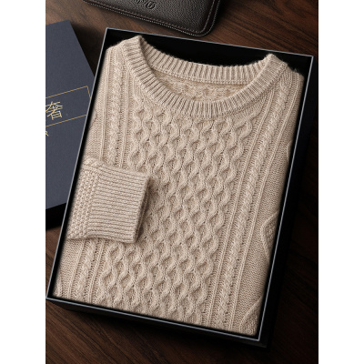 羊绒衫男士圆领秋冬新款五针三股加厚长袖套头羊毛针织衫打底毛衣