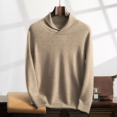 清新款平面山羊绒衫男士青果领打底衫韩版宽松型套头保暖毛衣