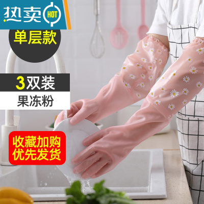 敬平洗碗手套女家务厨房耐用家用夏天洗衣衣服刷碗干活橡胶皮防水清洁 3双[粉色雏菊]束口单层 S