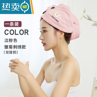 敬平干发帽吸水速干加厚2021新款浴帽洗头可爱擦包头发干发巾毛巾 淡粉-小雏菊[单个装]升级加厚