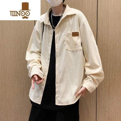 YANXU港风灯芯绒长袖衬衫男新款大码日系衬衣外套潮牌休闲上