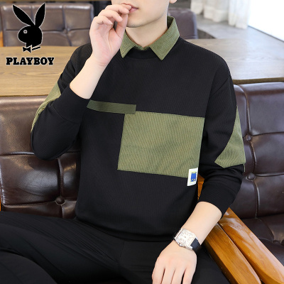 花花公子新款春秋长袖polo衫翻领卫衣T恤内搭衬衫领灯芯绒