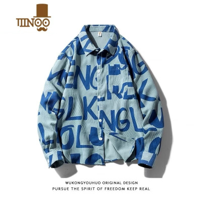 YANXU港风灯芯绒长袖衬衫男新款大码日系衬衣外套潮牌休闲上衣服