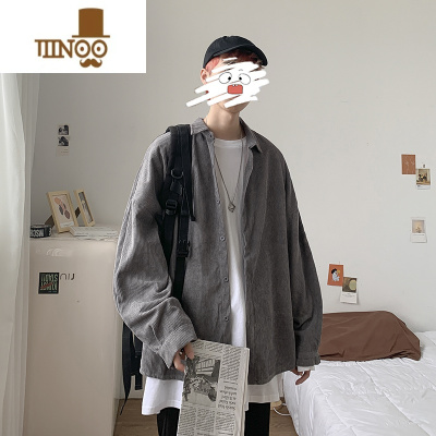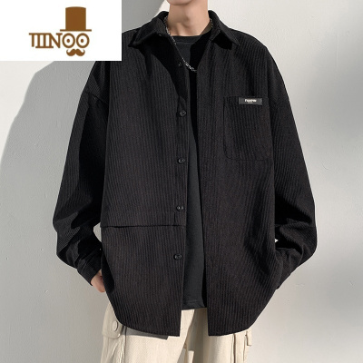 花花公子灯芯绒衬衫男士春秋季日系覆古宽松衬衣男生大码长袖外套