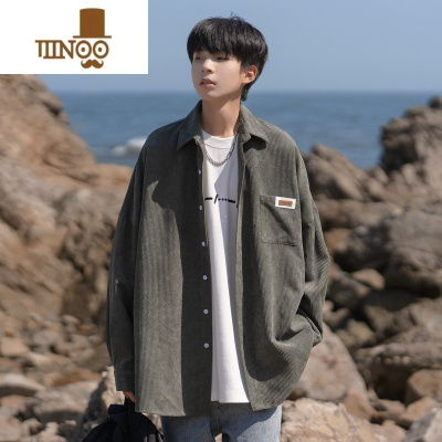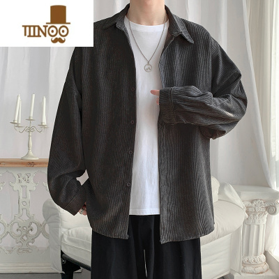 YANXU日系灯芯绒长袖衬衫男生秋季港风痞帅潮牌外套宽松青少年休闲衬衣