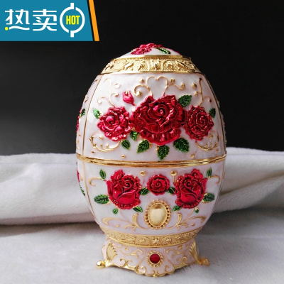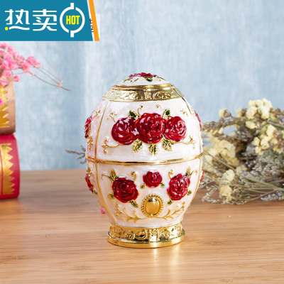 敬平欧式牙签盒客厅时尚茶几自动手按牙签筒创意时尚复古摆件牙签罐 白底红玫瑰