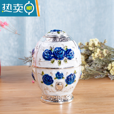 敬平欧式牙签盒客厅时尚茶几自动手按牙签筒创意时尚复古摆件牙签罐 白底蓝玫瑰