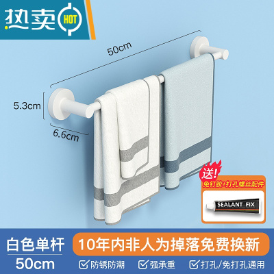 敬平免打孔白漆单杆黑色毛巾架卫生间浴室拖鞋置物架厕所厨房抹布收纳 素雅白单杆-50cm浴室置物架