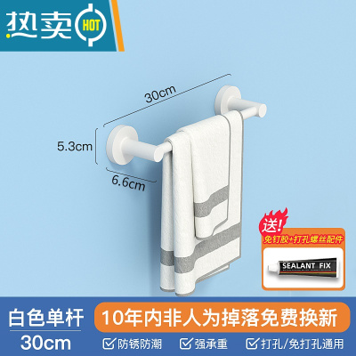 敬平免打孔白漆单杆黑色毛巾架卫生间浴室拖鞋置物架厕所厨房抹布收纳 素雅白单杆-30cm浴室置物架