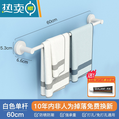 敬平免打孔白漆单杆黑色毛巾架卫生间浴室拖鞋置物架厕所厨房抹布收纳 素雅白单杆-60cm浴室置物架