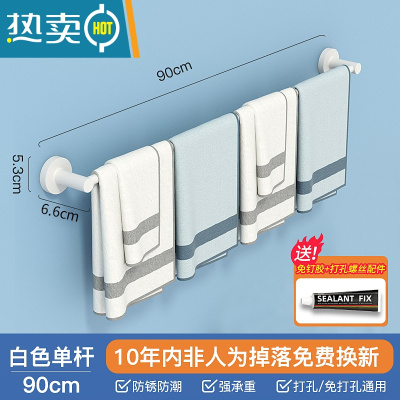 敬平免打孔白漆单杆黑色毛巾架卫生间浴室拖鞋置物架厕所厨房抹布收纳 素雅白单杆-90cm浴室置物架