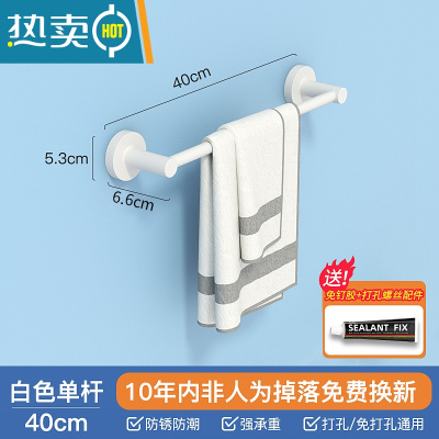 敬平免打孔白漆单杆黑色毛巾架卫生间浴室拖鞋置物架厕所厨房抹布收纳 素雅白单杆-40cm浴室置物架
